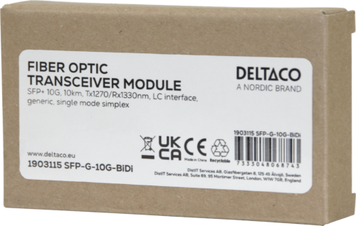 Generic compatible 10GBASE-BX-U SFP+ transceiver supports up to 10km link lengths over OS2 singlemode fiber via an LC simplex connector. This 10G BiDi SFP+ transceiver, featured with data transmission over a single strand of fiber, the one transceiver transmits a 1270-nm channel and receives a 1330-nm signal, whereas the other BiDi SFP+ optics transmits at a 1330-nm wavelength and receives a 1270-nm signal.
